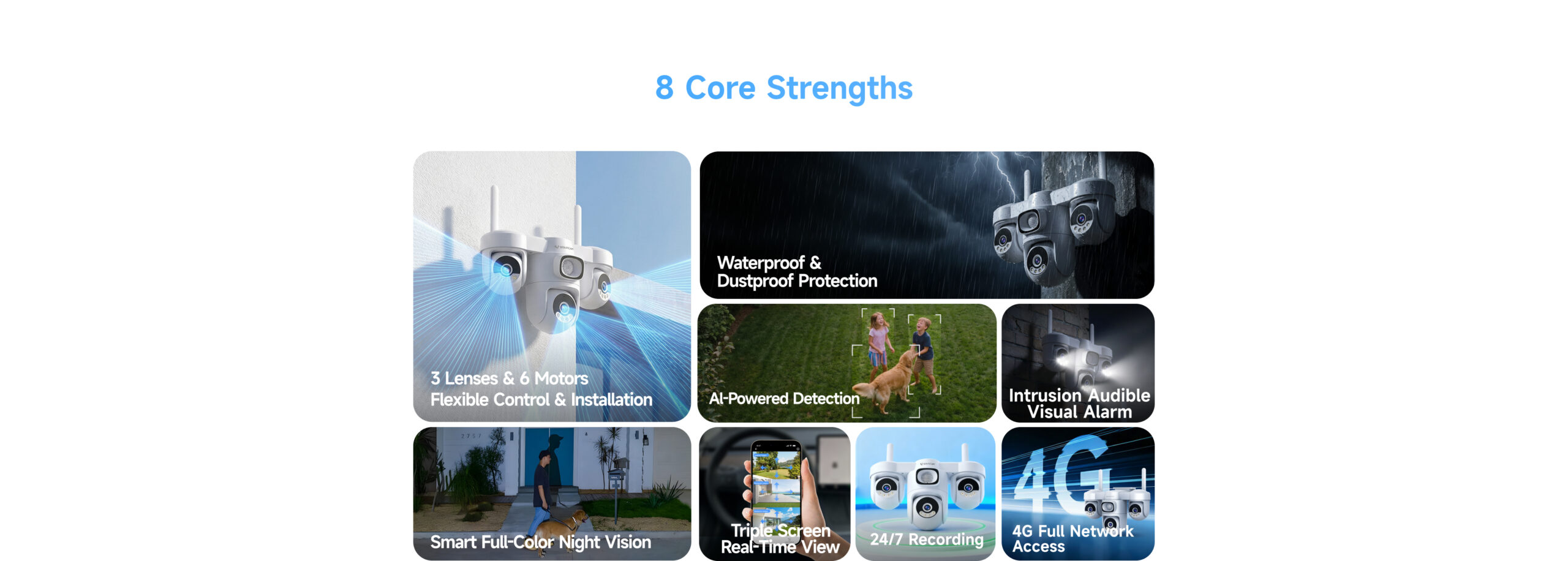 | ✮ Ultra-wide-angle coverage, six-motor pan/tilt for flexible 360° rotation without blind spots | ||