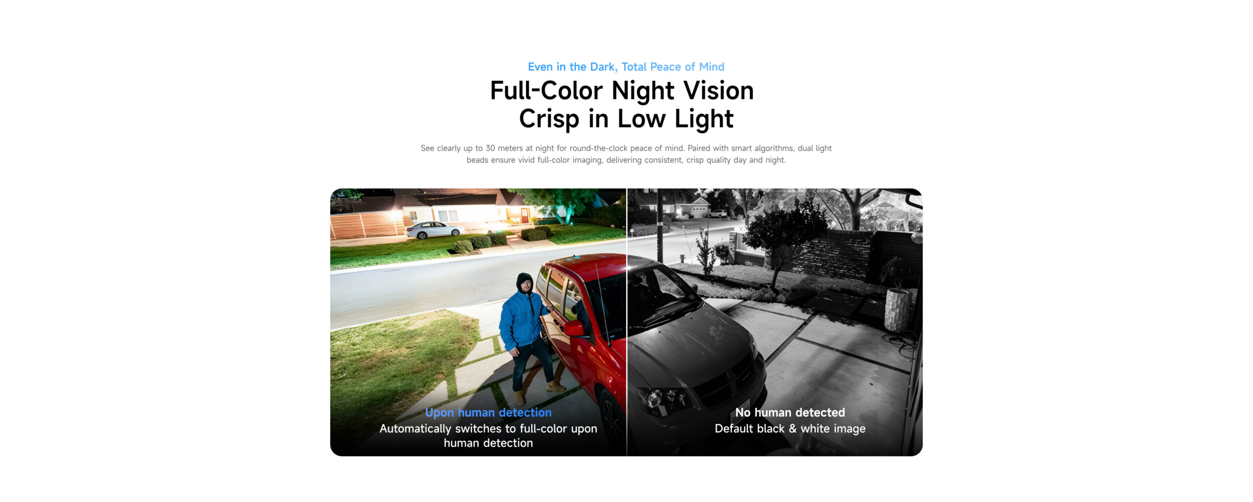 | ✮ Enhanced full-color night vision + B&W night vision, dual-light matrix illuminators for clearer full-color imaging and brighter night vision | ||