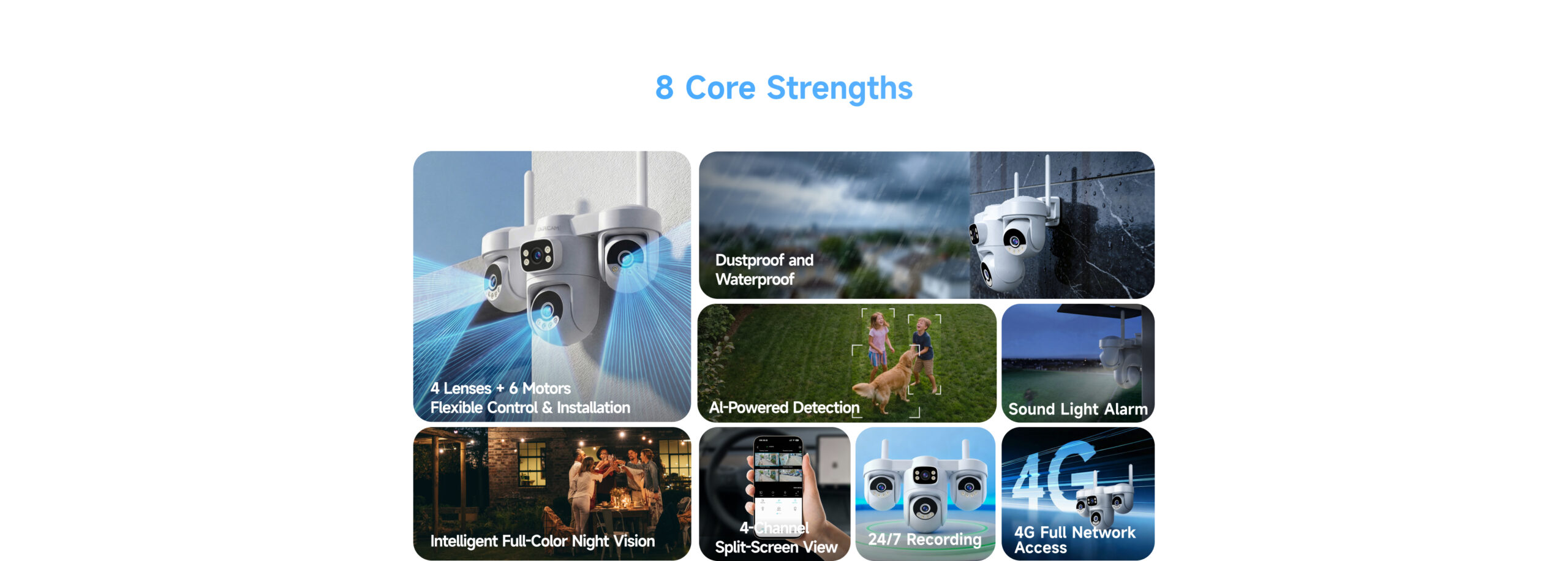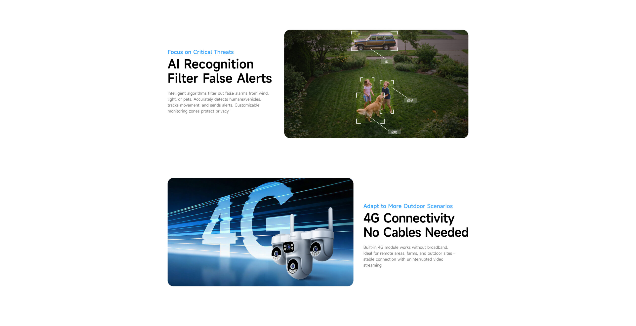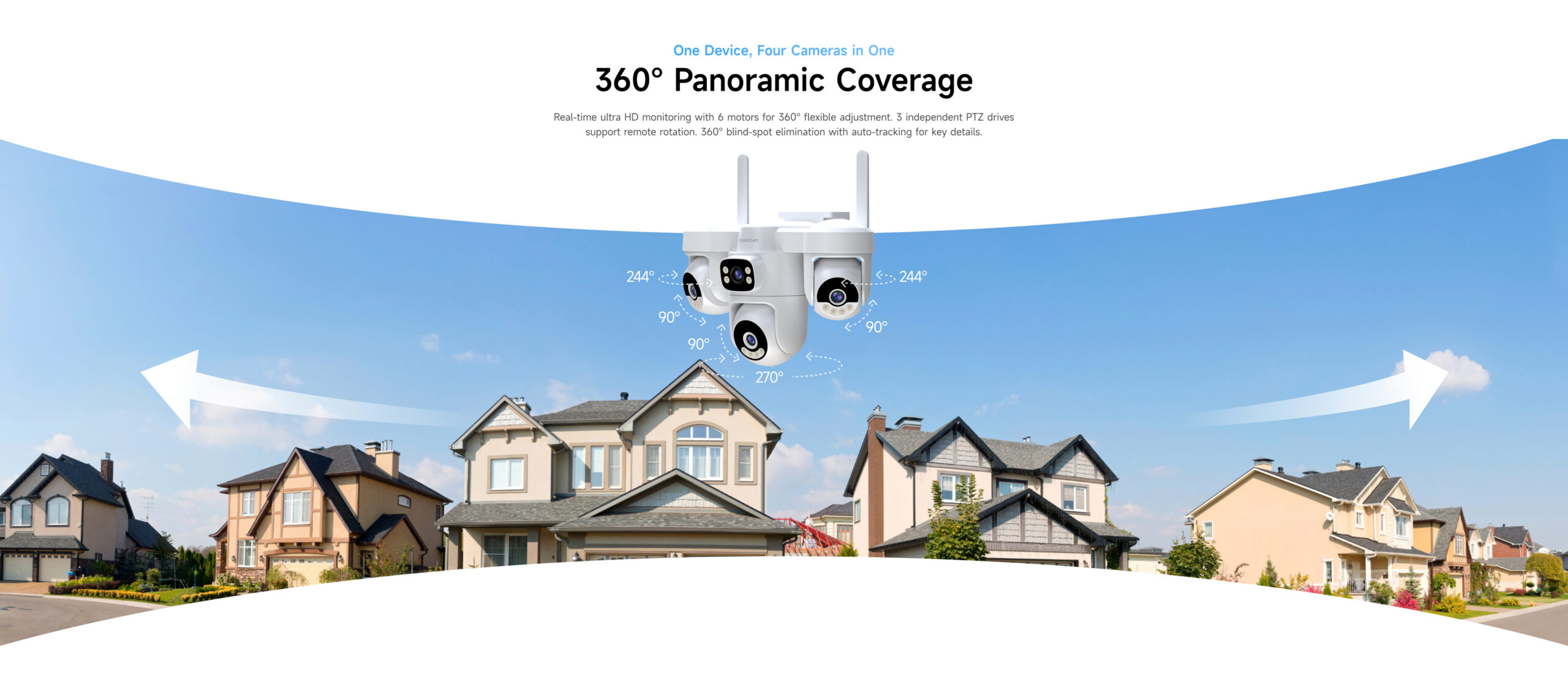 | ✮ Ultra-wide-angle surveillance, six-motor PTZ control enables flexible 360° rotation with no blind spots. | ||