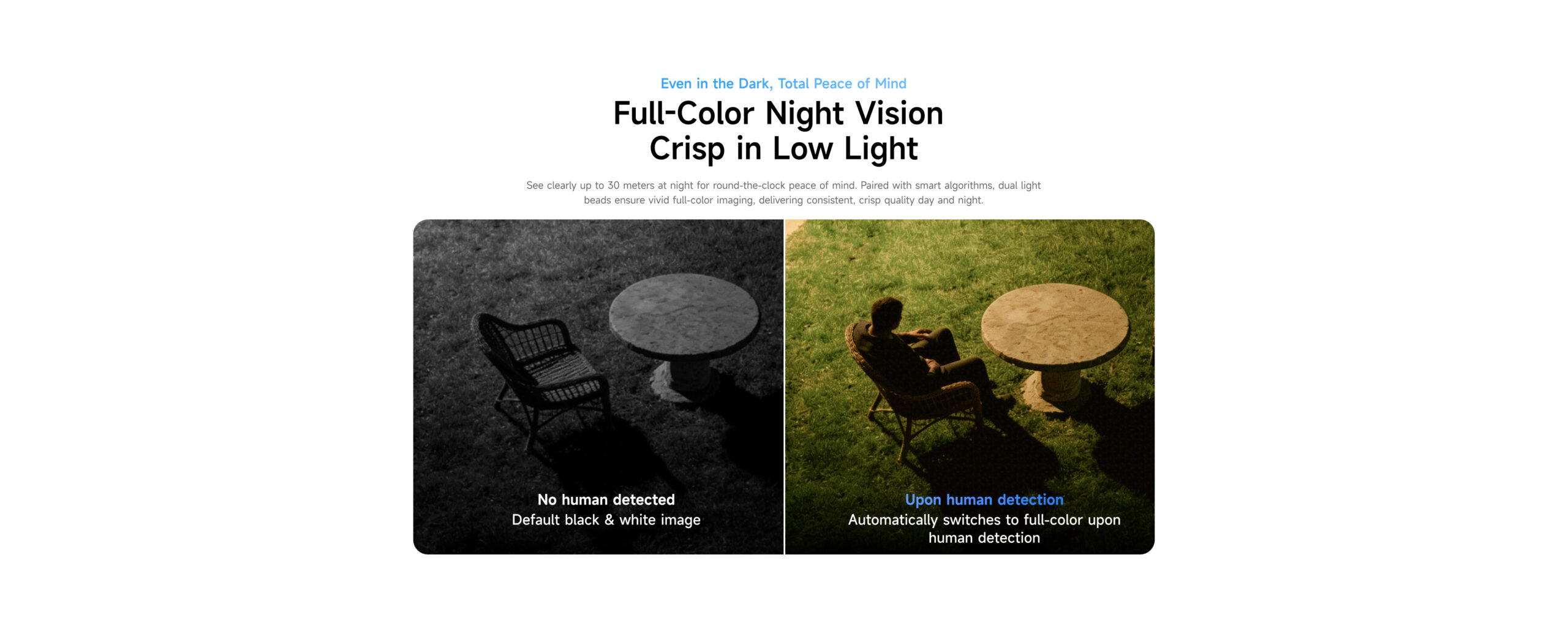 | ✮ Premium full-color + B&W night vision, dual-light LED matrix fill light ensures clearer full-color imaging and brighter night vision. | ||