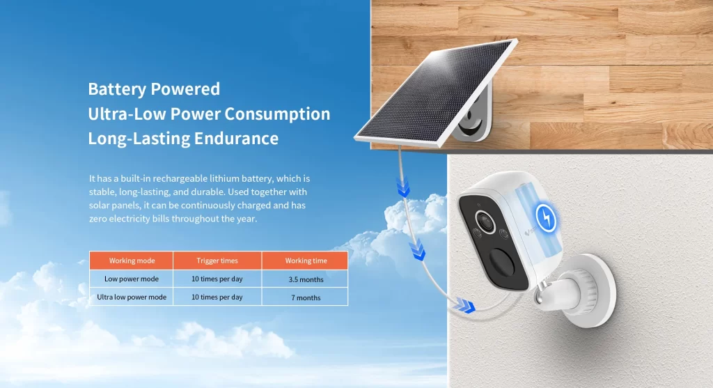 | ✮Support external solar panels to continuously power the camera. | ||