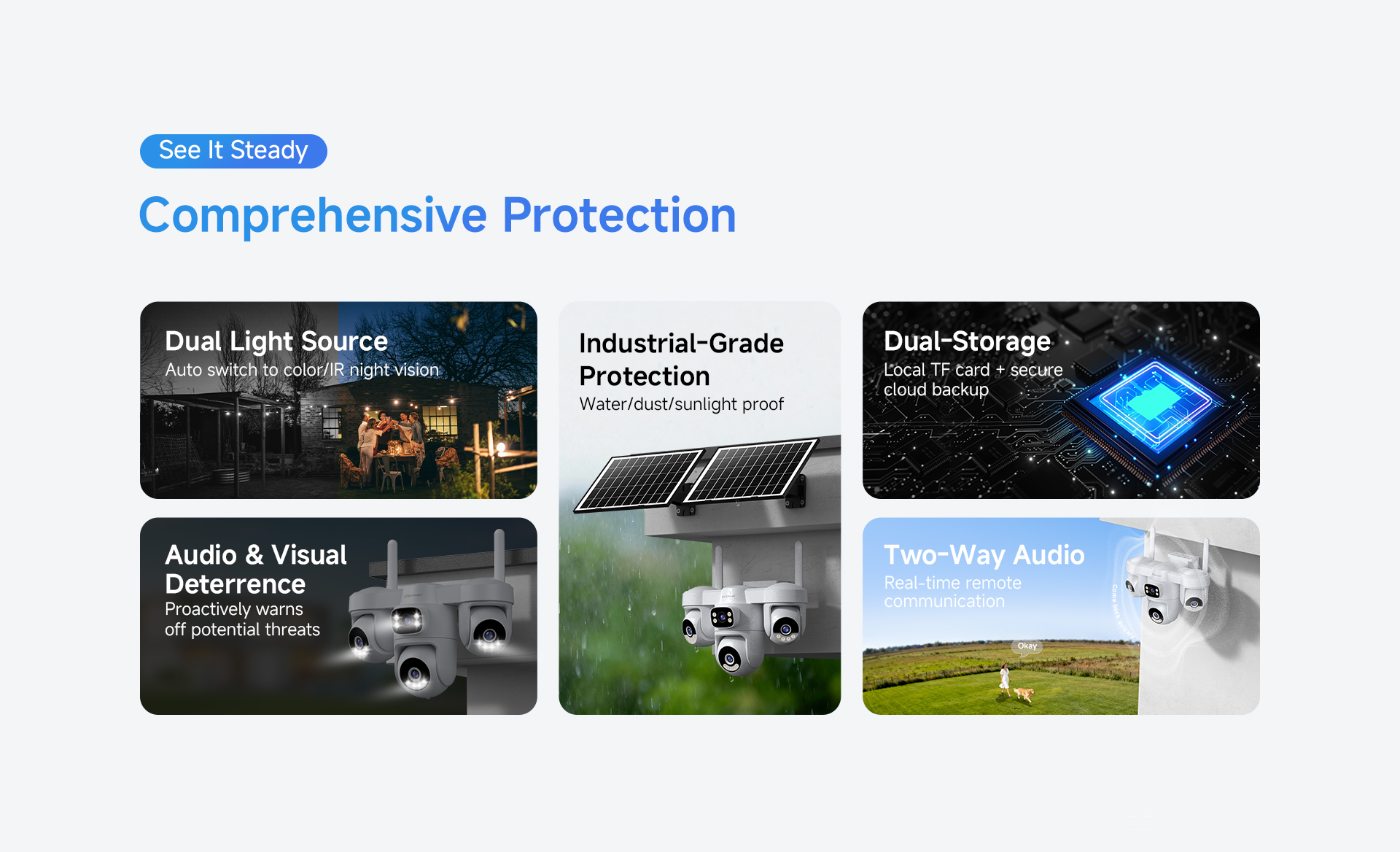 | ✮Ultra-wide angle, six-motor gimbal control, flexible rotation, 360-degree unobstructed view. | ||