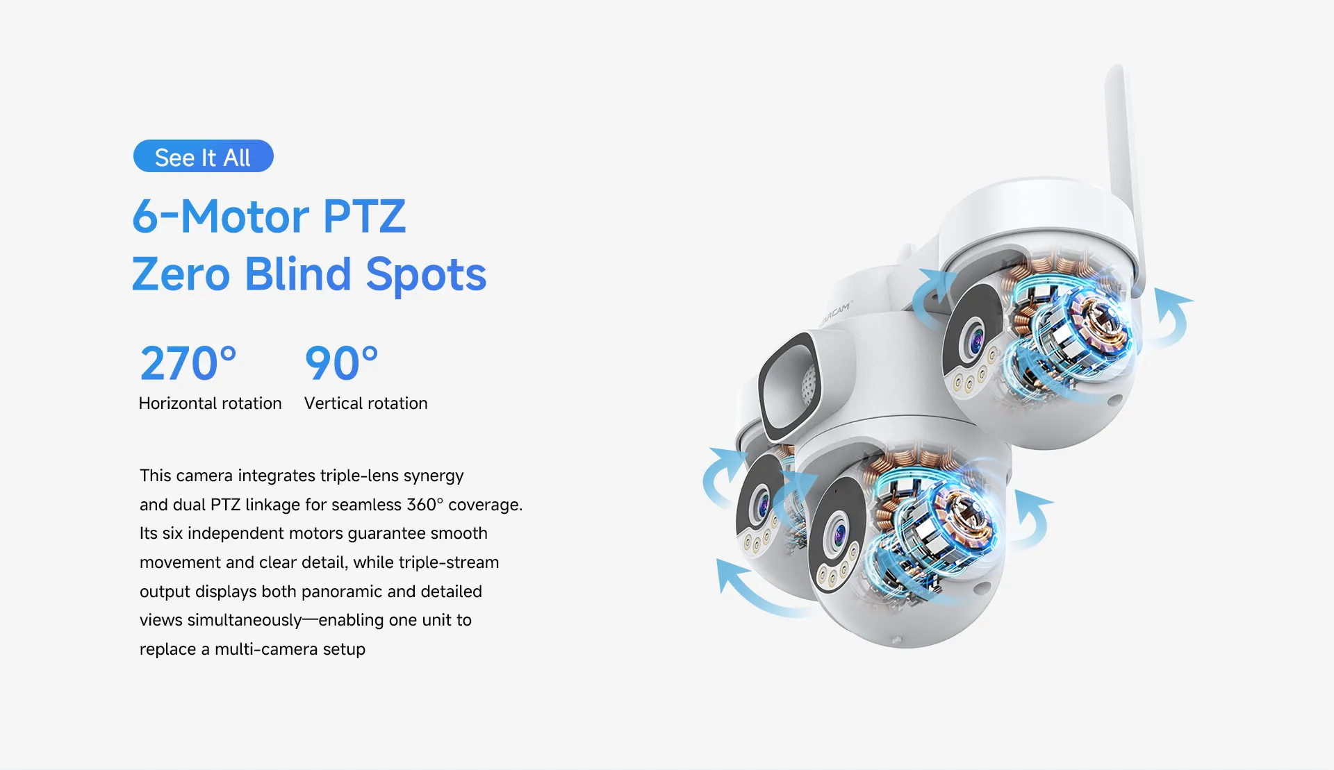 | ✮Ultra-wide angle, six-motor gimbal control, flexible rotation, 360-degree unobstructed view. | ||