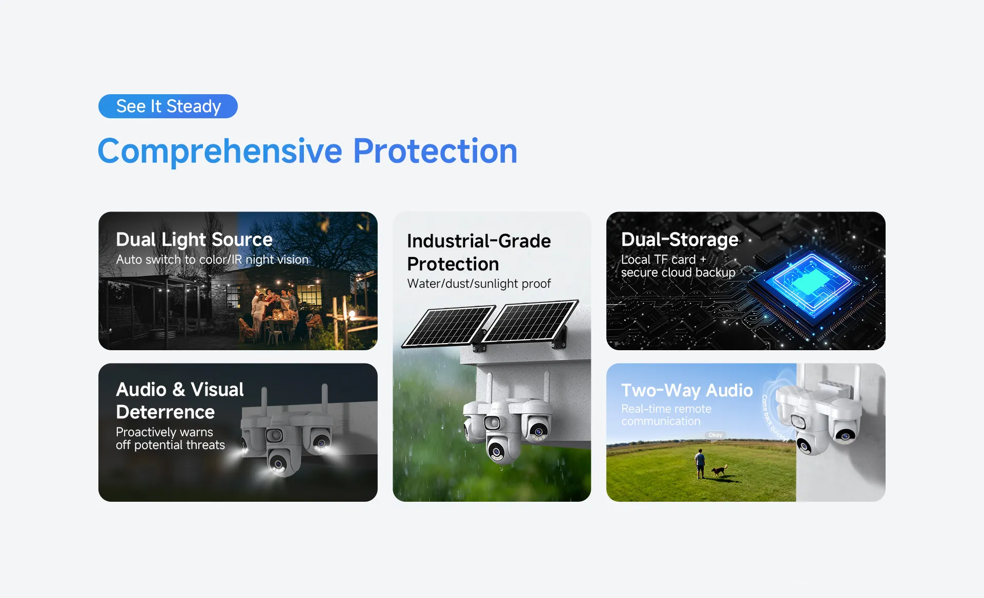 | Packing list | Camera*1,TYPE-C*1, user manual*1, solar panel*2, solar panel bracket*2 | |