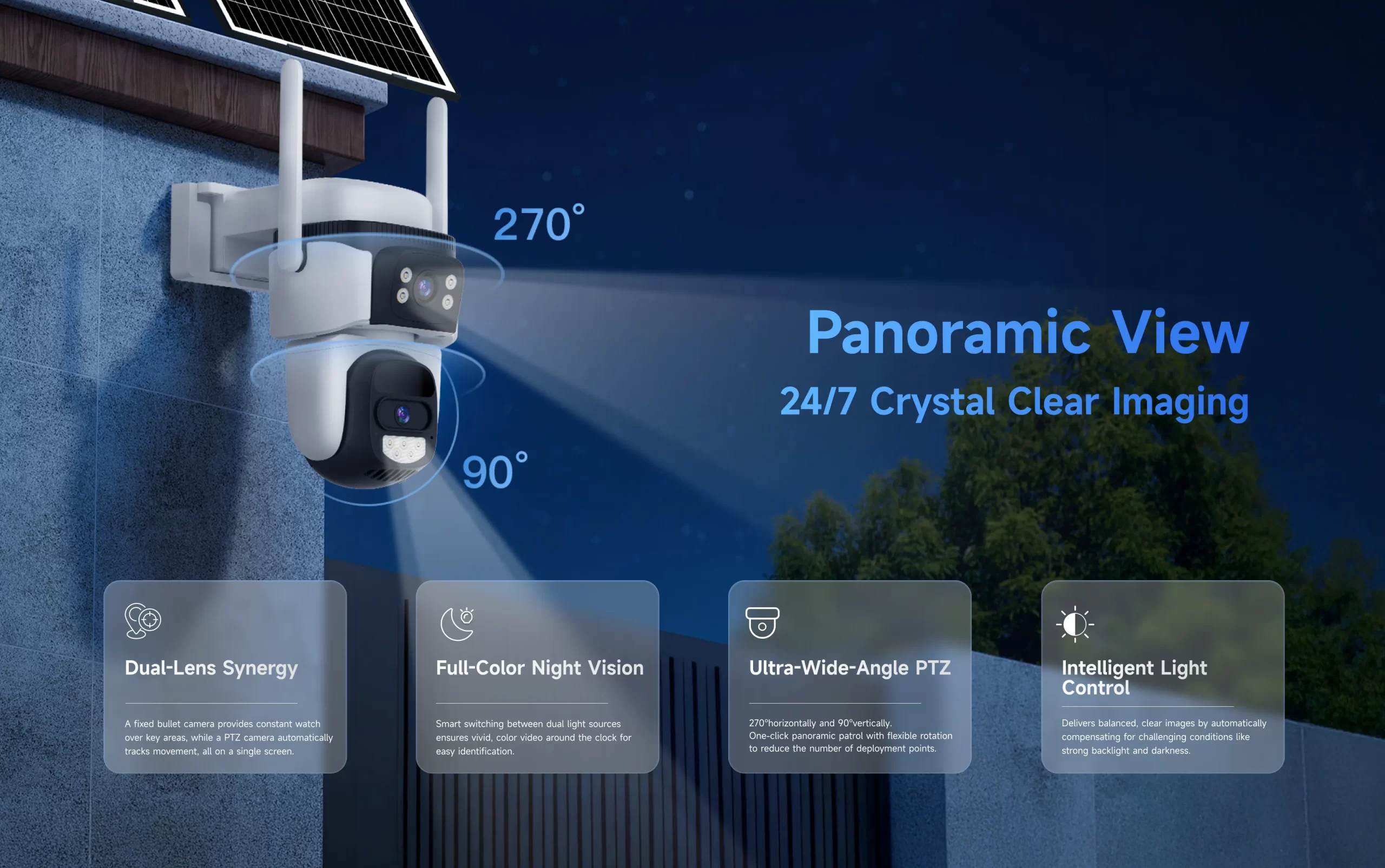 | ✮Ultra wide angle, three-way pan-tilt, pan 270°, tilt90°, flexible rotation, 360° comprehensive coverage | ||