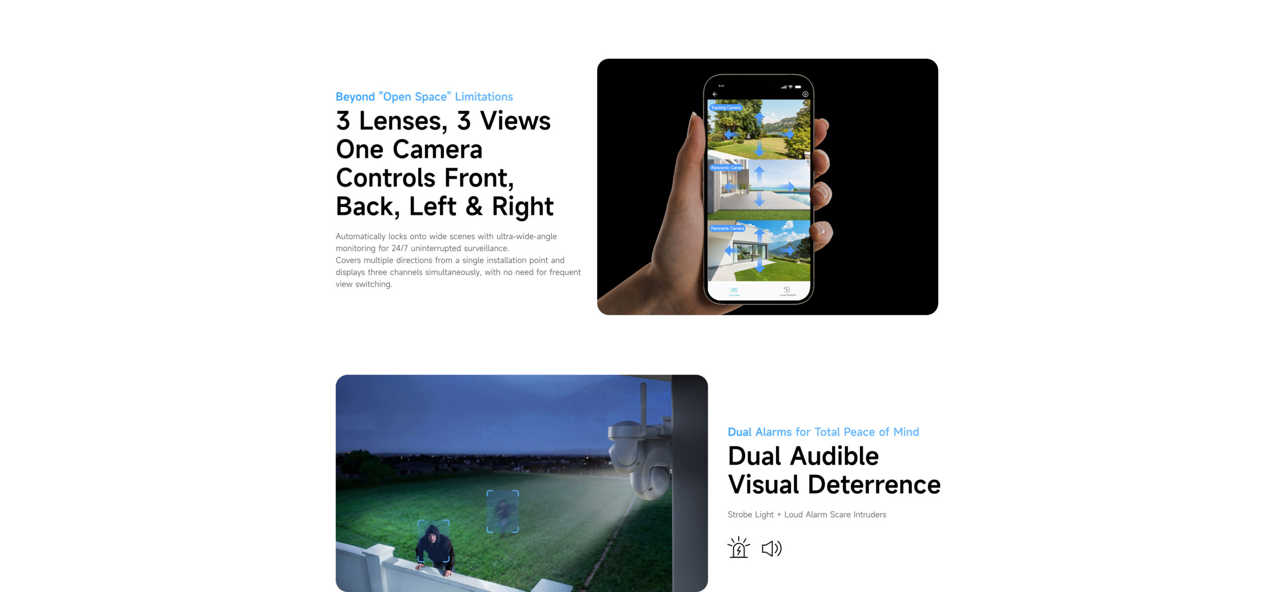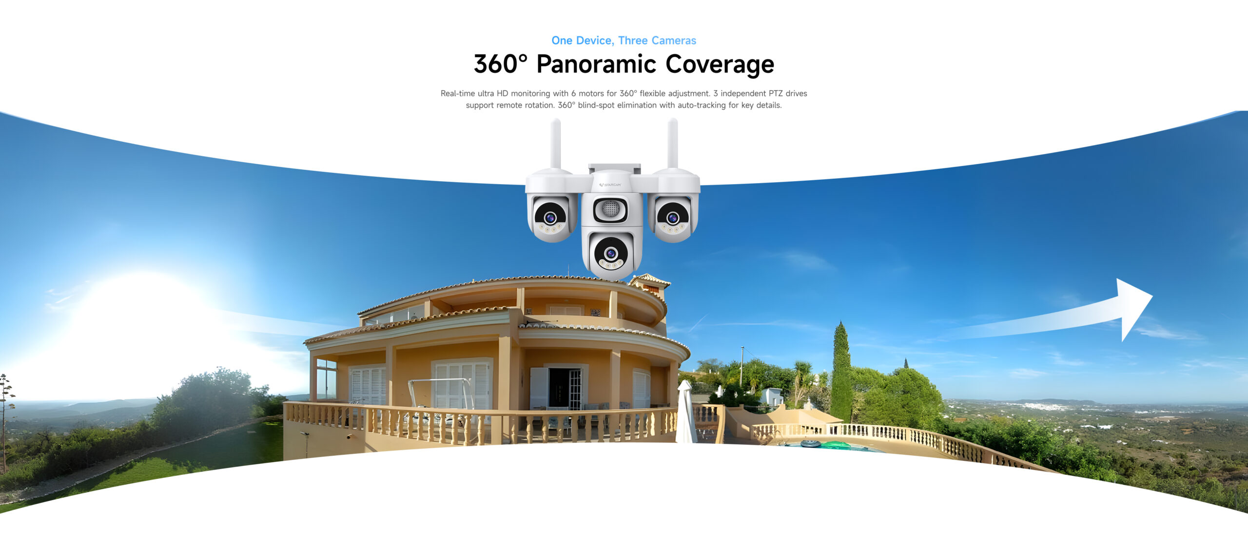 | ✮ Ultra-wide-angle coverage, six-motor pan/tilt for flexible 360° rotation without blind spots | ||