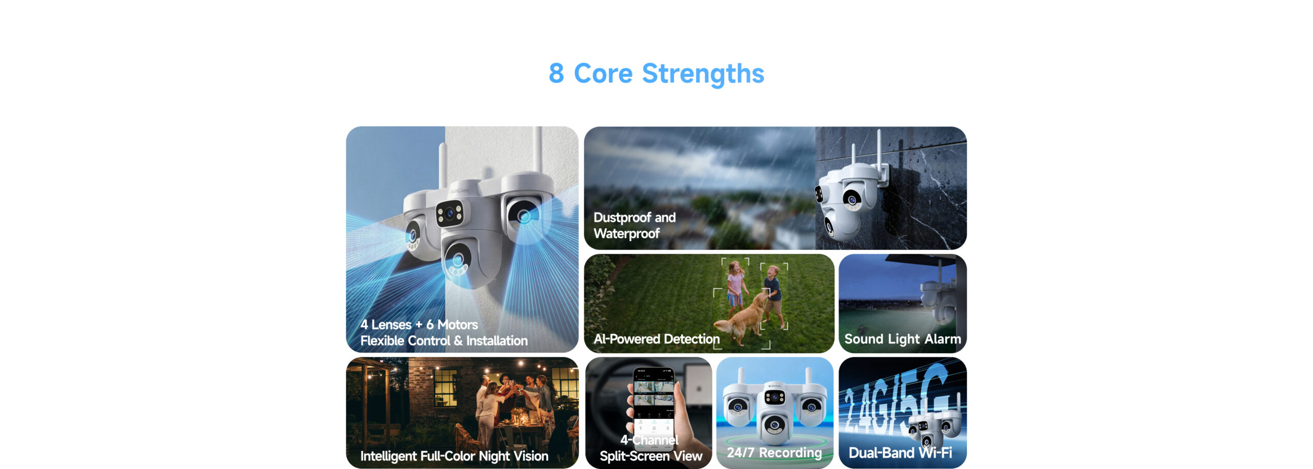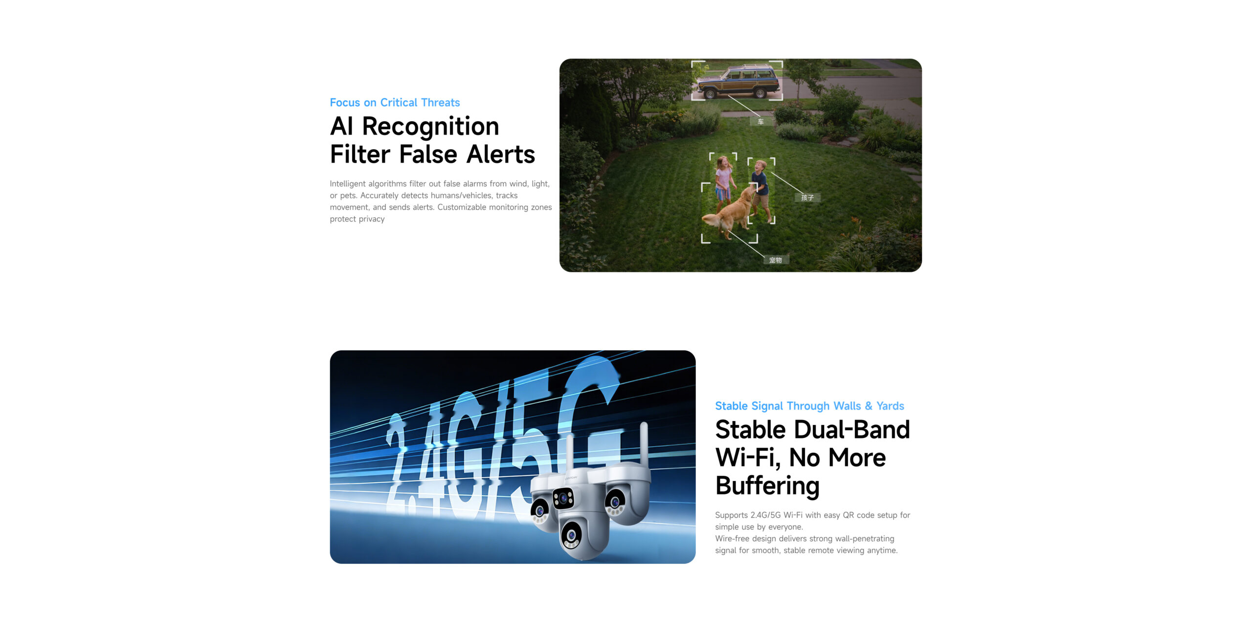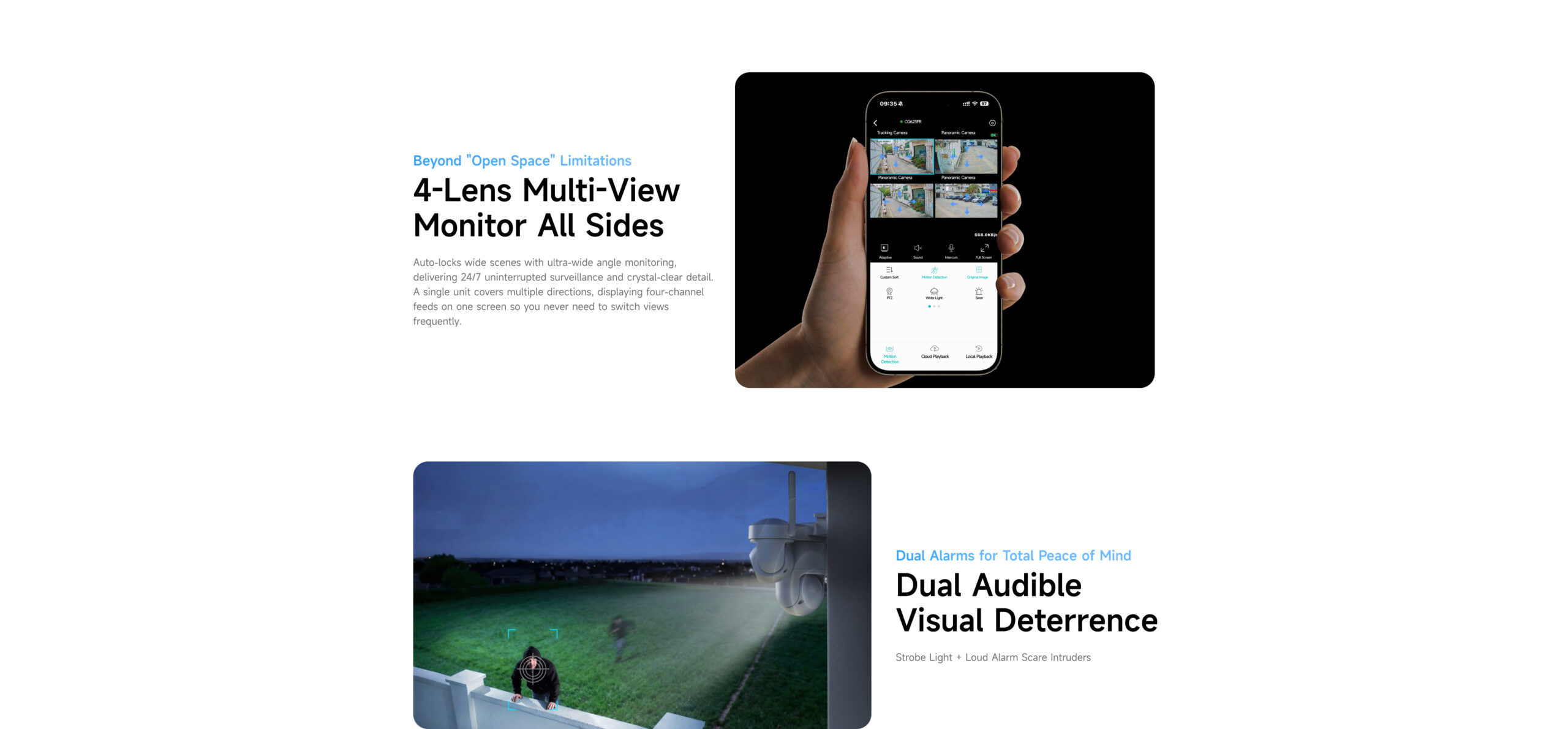 | ✮ Ultra-wide-angle surveillance, six-motor PTZ control enables flexible 360° rotation with no blind spots. | ||