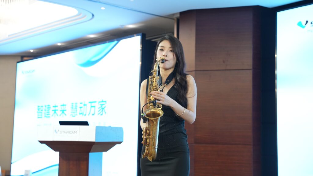 The evening’s roundtable banquet commenced with a melodious saxophone solo, followed by captivating renditions of classic songs such as “The Moon Represents My Heart” and “Glorious Years,” resonating deeply with the entire audience. During the interactive segment, Mr. Yan, Chairman of VStarcam, and Mr. Dong, President of Beijing Tenglong, drew lucky winners to present grand prizes including the latest iPhone 17, propelling the event to its climax. Guests engaged in relaxed and joyful conversations, fostering deeper connections while looking forward to future collaborations.