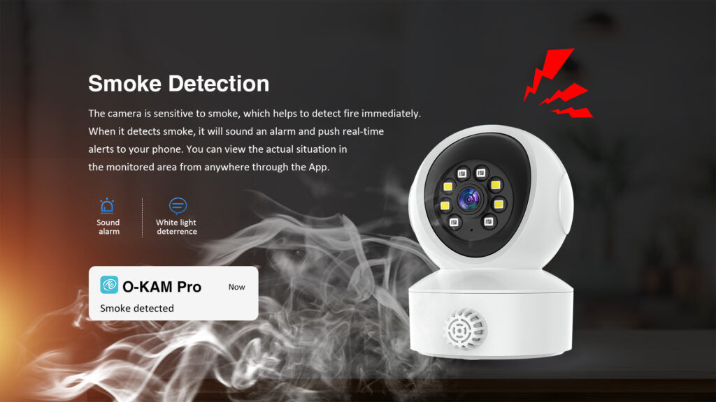 Smoke detection cameras (CS49LM/CG49LM) adopt advanced fire & smoke recognition algorithms to sensitively identify smoke and flame sources, and accurately detect natural gas/LPG leaks. Instant remote alerts are triggered in case of danger, providing all-round safety protection for homes.