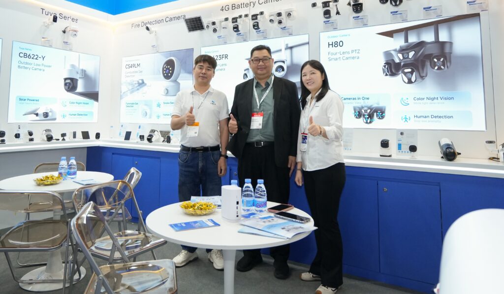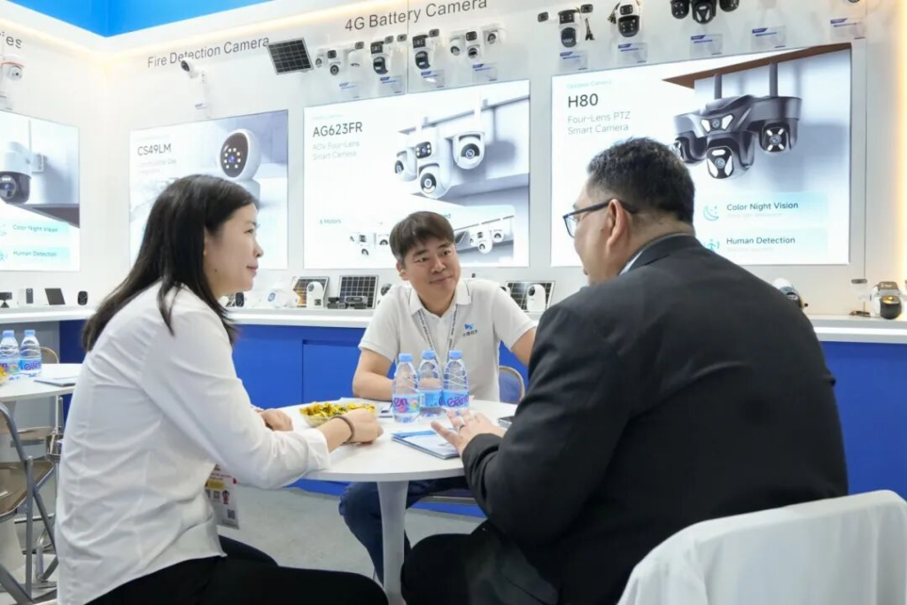 Key product lines were presented in dedicated zones: Tuya-enabled series, fire & smoke detection cameras, 4G battery cameras and Wi-Fi cameras. Flagship products such as the E30-4 NVR kit, CB622-Y and H80 drew keen interest from overseas visitors for hands-on experience and in-depth business talks.