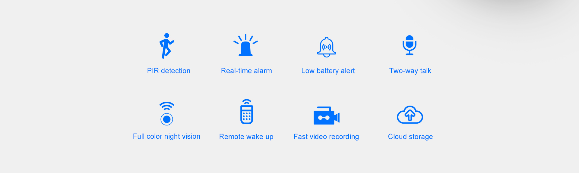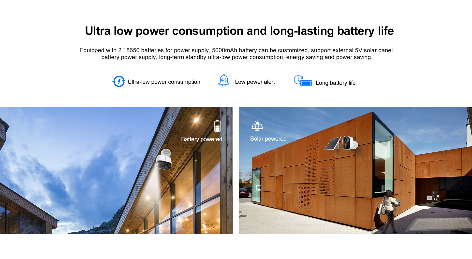 | Super power saving mode | PIR triggered recording, camera cannot be woken up through App | |