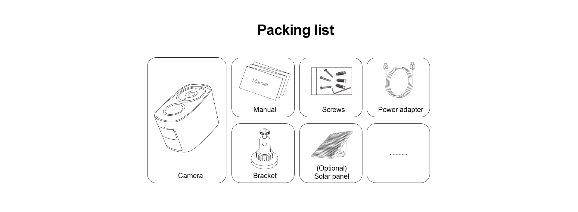 | Packing list | Camera*1, bracket*1, charging cable*1, manual*1 | |