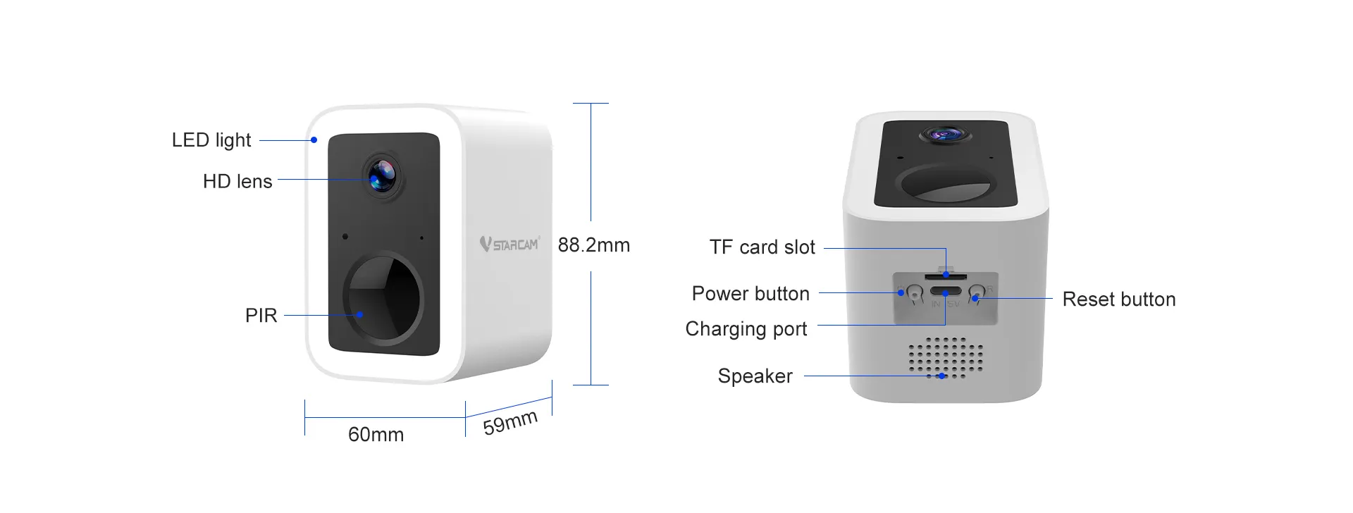 | Weight | Camera size: 88.2*60*59mm Packaging box size: 152x119x79mm | |