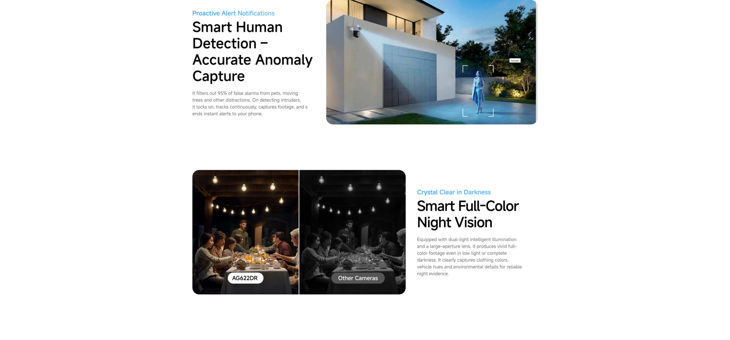 | Alarm detection | Support human detection | |