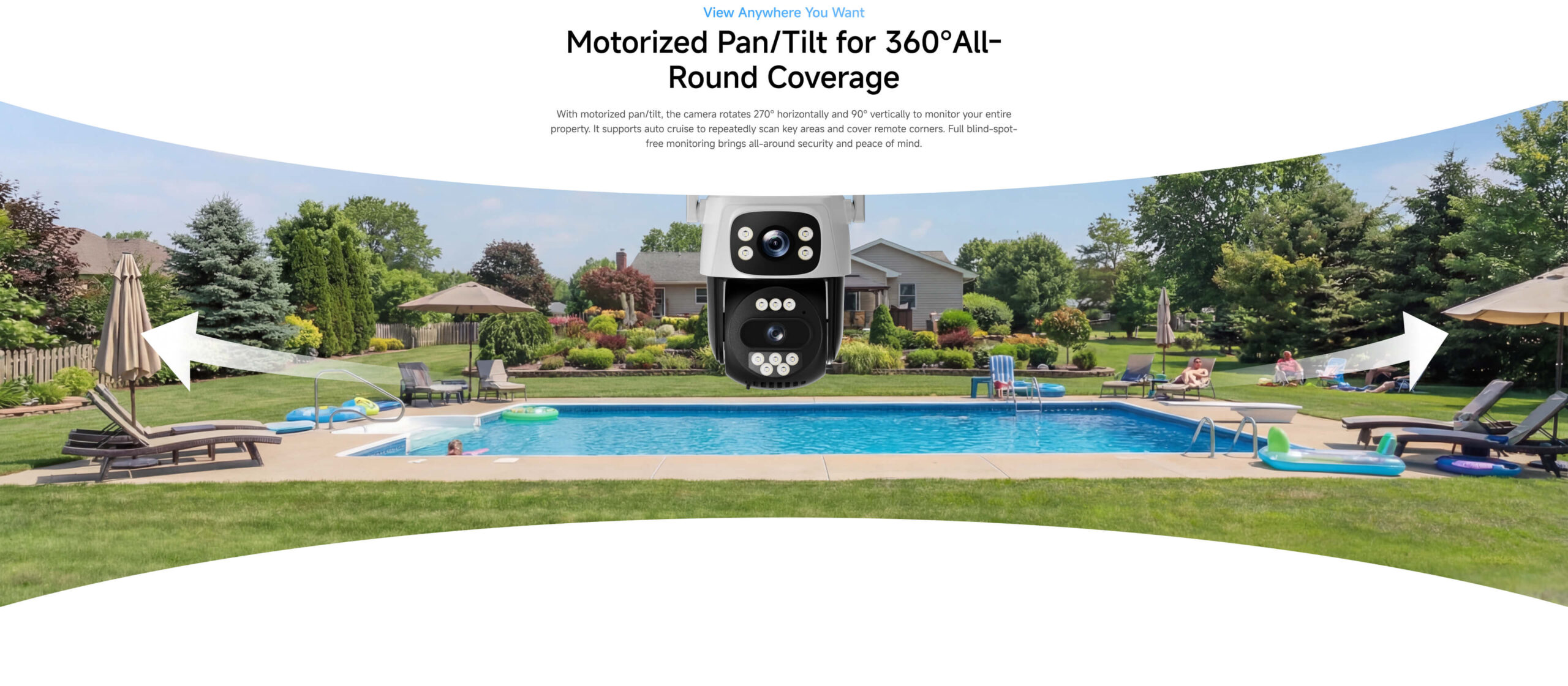 | ✮Ultra wide angle, three-way pan-tilt, pan 270°, tilt90°, flexible rotation, 360° comprehensive coverage | ||