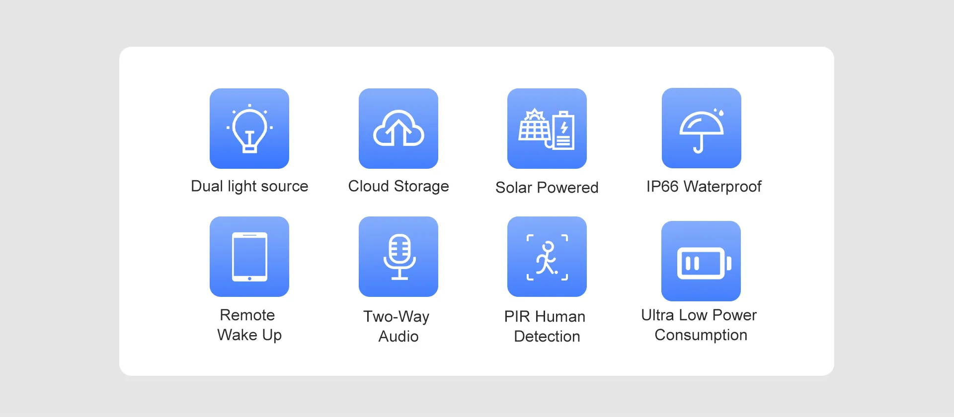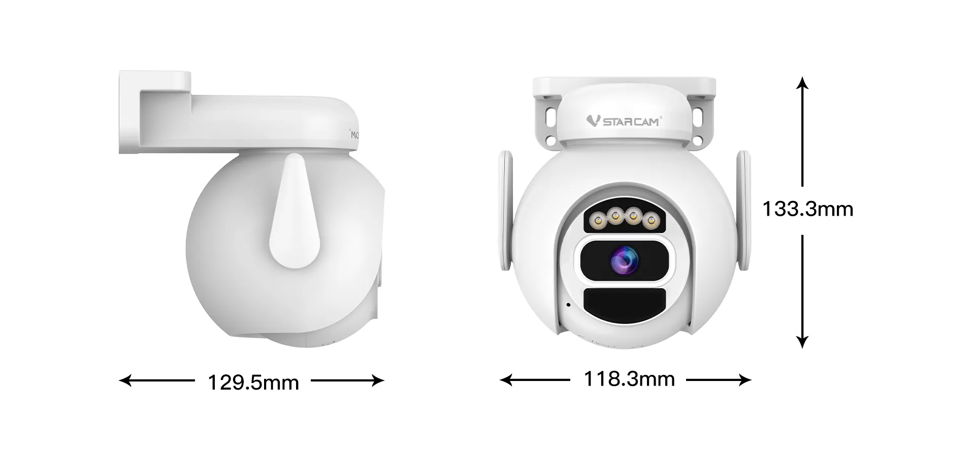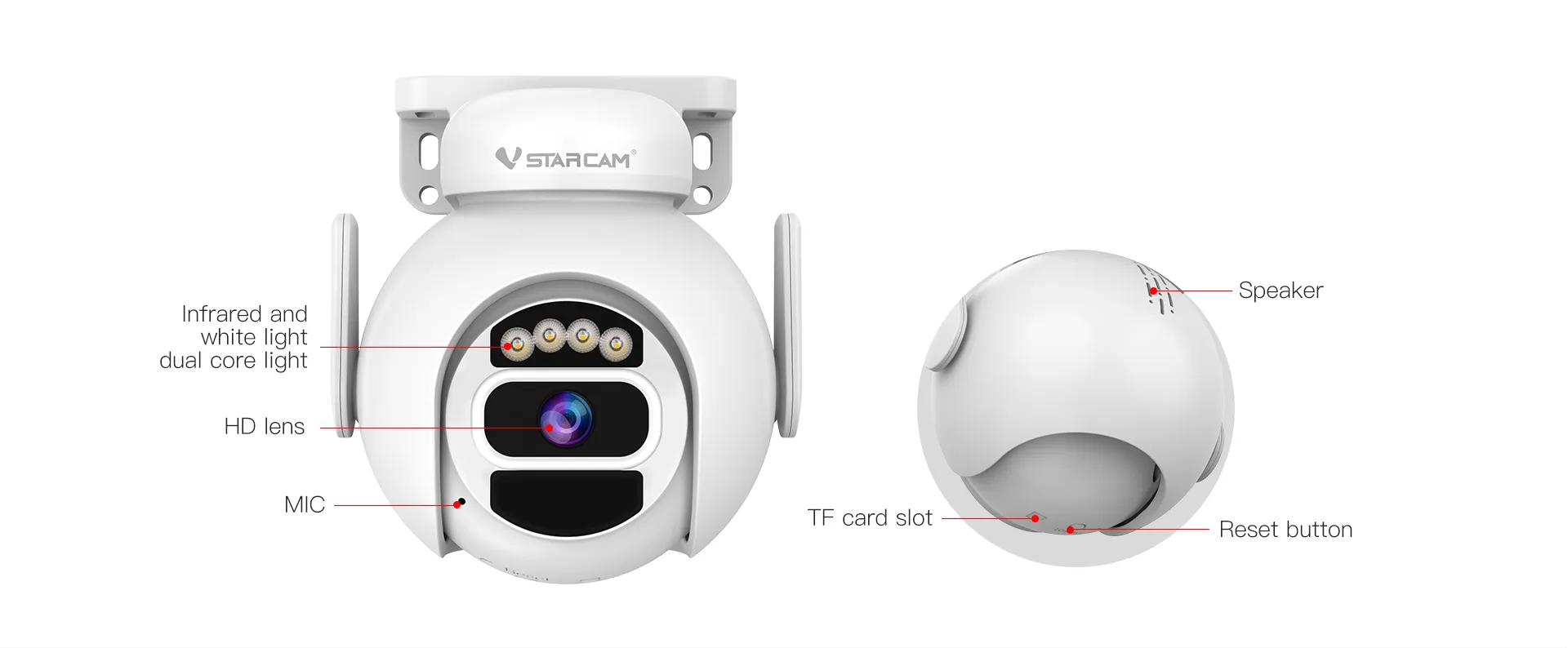 | Alarm | Audible and visual alarm | Sound and light alarm, 6 infrared light and 6 white light, full-color night vision |